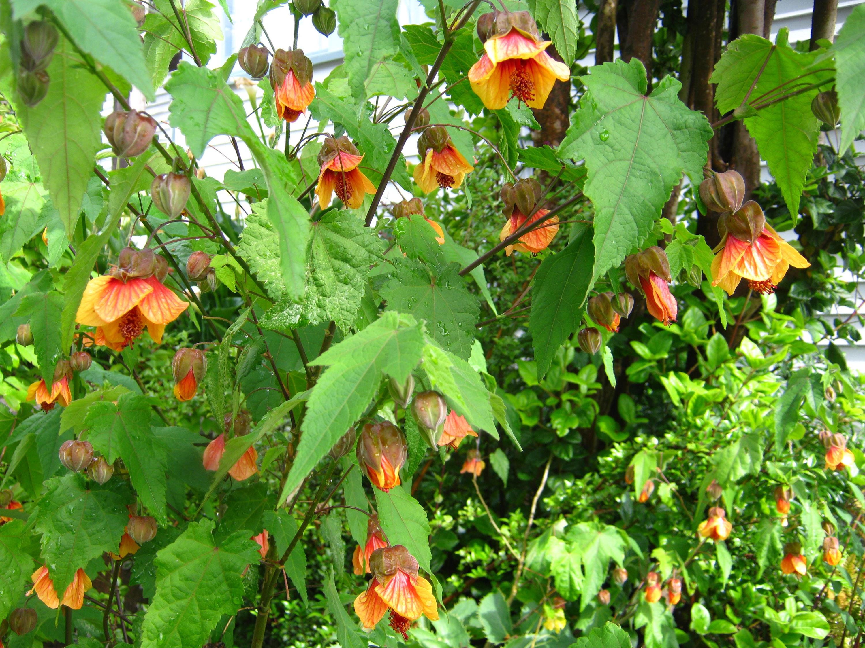 Flared, pendant, soft apricot colored flowers with reddish sepals, the flower petals becoming lighter in full sunlight or aging to dark, "Hawaiian Punch red" in cool weather. A thinner-textured flower, on a plant of moderate vigor, it grows moderately openly to about 3-6' tall and wide. Certainly this has at least some A. megapotamicum in the parentage, from the copious production of its smaller flowers and attractively long, narrow, almost uncut, dark green leaves. rev