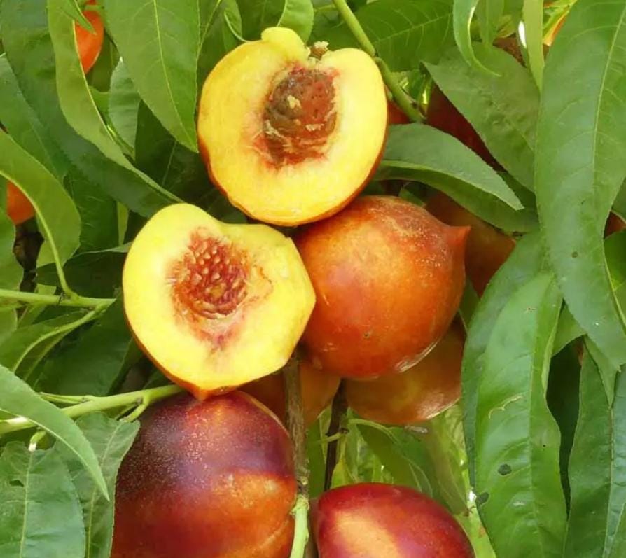 a highly rated, self-fruitful, deciduous tree known for its exceptional, sweet-tart, yellow-fleshed, freestone fruit and stunning double pink spring blossoms.
